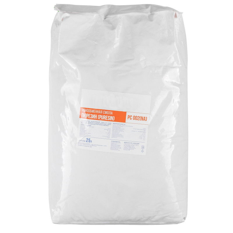 Pureresin PC002 – гелевая сильнокислотная катионообменная смола для умягчения воды на основе полистирола. Обладает высокой ёмкостью и однородным гранулометрическим составом, может применяться как в промышленной, так и бытовой водоподготовке. Смола удаляет из воды ионы кальция и магния, заменяя их ионами натрия. После истощения ёмкости она может быть подвержена регенерации раствором поваренной соли. Последующая ёмкость смолы связана с дозой соли, использованной при регенерации. Наряду с солями жесткости с помощью смолы могут удаляться соли железа и марганца.