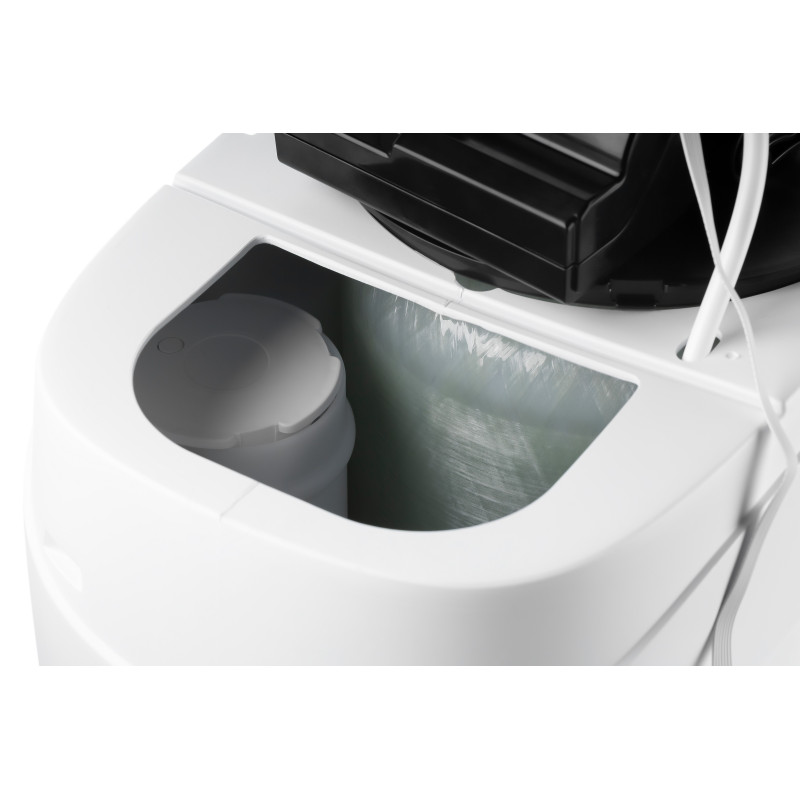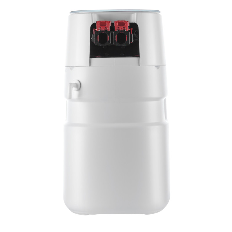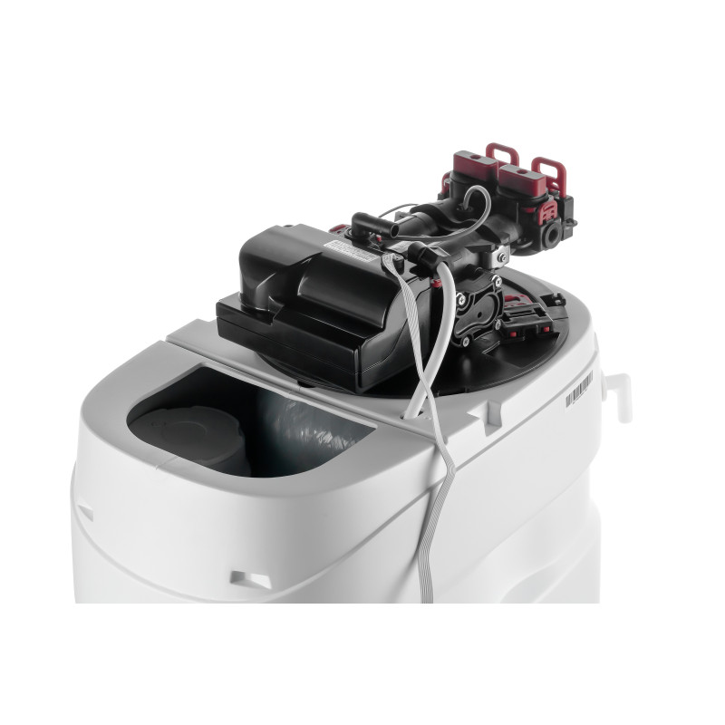 Умягчитель может быть подключен к магистрали и холодной, и горячей воды. Не требует использования сменных картриджей: для регенерации достаточно открыть верхнюю крышку на корпусе и засыпать необходимое количество соли.