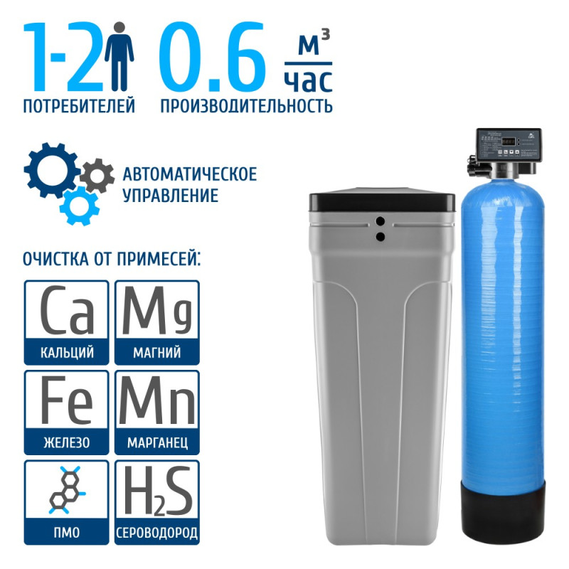 Комплект представляет собой фильтр комплексной очистки от железа, марганца, солей жесткости, природной органики.
