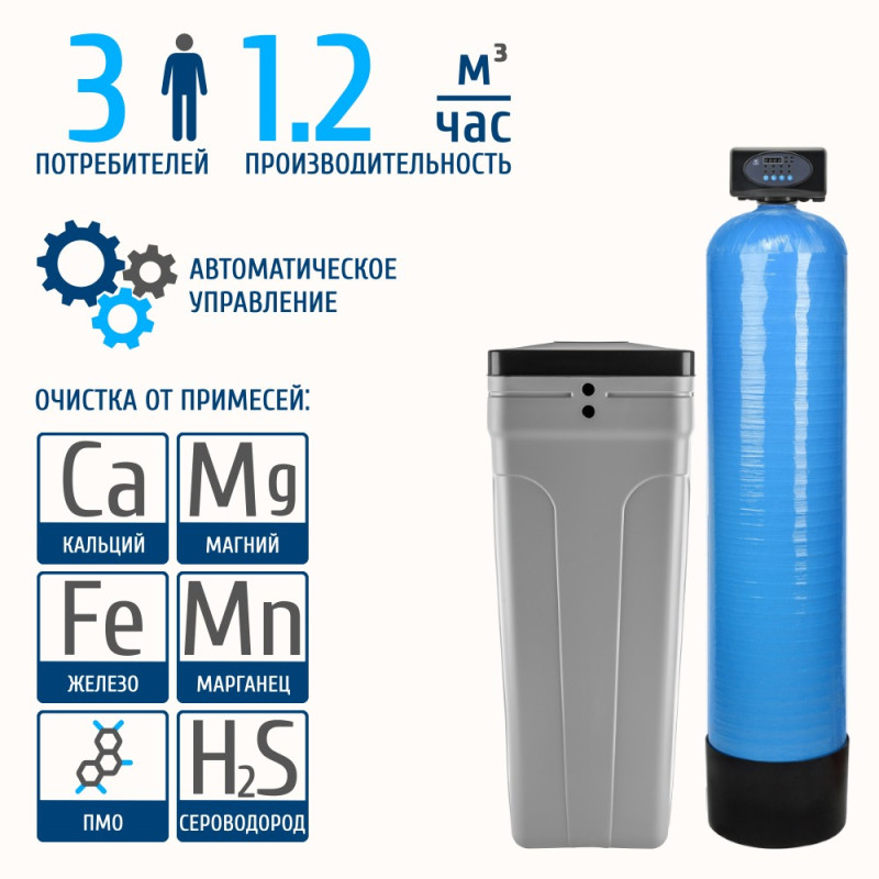 Комплект представляет собой фильтр комплексной очистки от железа, марганца, солей жесткости, природной органики.
