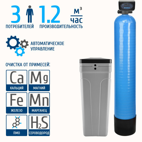 Комплект представляет собой фильтр комплексной очистки от железа, марганца, солей жесткости, природной органики.
