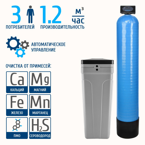 Комплект представляет собой фильтр комплексной очистки от железа, марганца, солей жесткости, природной органики.