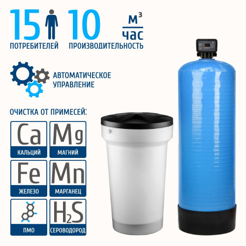 Комплект представляет собой фильтр комплексной очистки от железа, марганца, солей жесткости, природной органики.