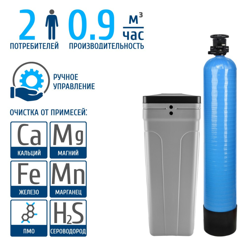 Комплект умягчения воды FKSMn 08х44 Runxin F64B (ручное управление) состоит из: